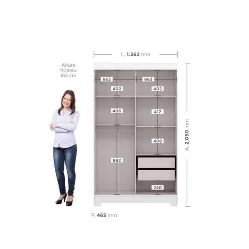 Dimensões :Largura: 136,20 cm, Altura: 205,00 cm , Profundidade: 46,50 cm.